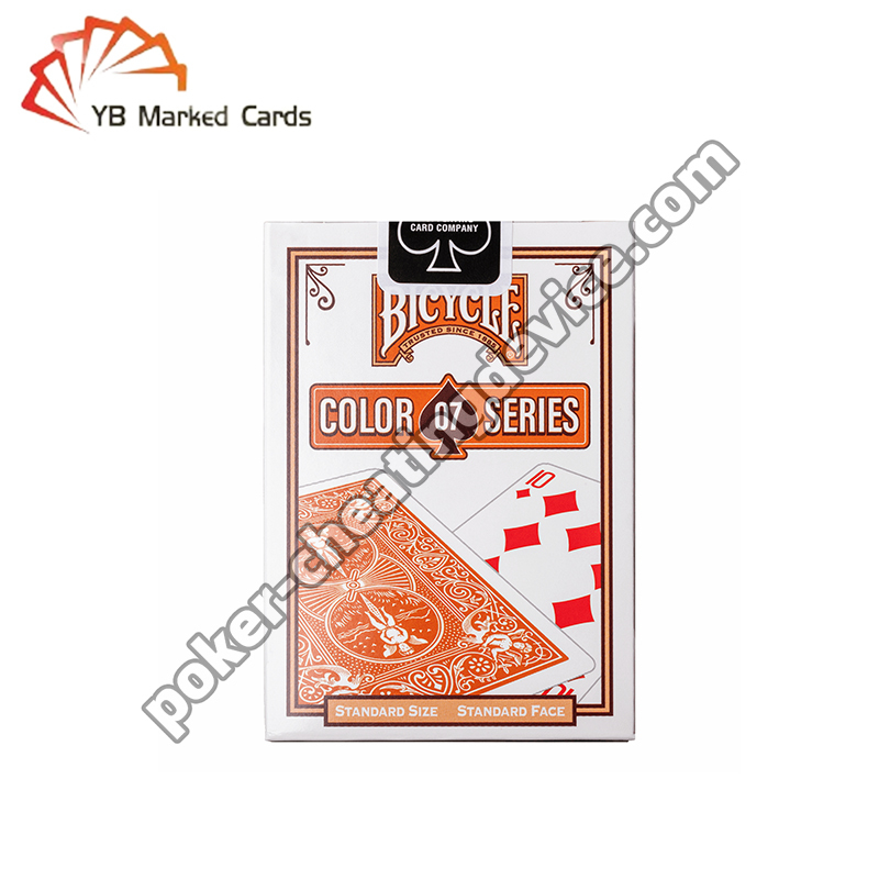 আপনি কি লাইভ পোকার গেমে সুবিধা পাওয়ার জন্য 100% সনাক্ত করা যায় না এমন একটি উপায় খুঁজছেন? আমাদের Bicycle কালার সিরিজের আলোকিত চিহ্নিত কার্ডগুলি নিখুঁত সমাধান। এই উচ্চ-মানের চিহ্নিত পোকার কার্ডগুলিতে অদৃশ্য ইনফ্রারেড কালি চিহ্নিতকরণ রয়েছে যা খালি চোখে সম্পূর্ণরূপে সনাক্ত করা যায় না তবে বিশেষ পোকার চশমা বা ইনফ্রারেড কন্টাক্ট লেন্সের মাধ্যমে সহজেই পড়া যায়।